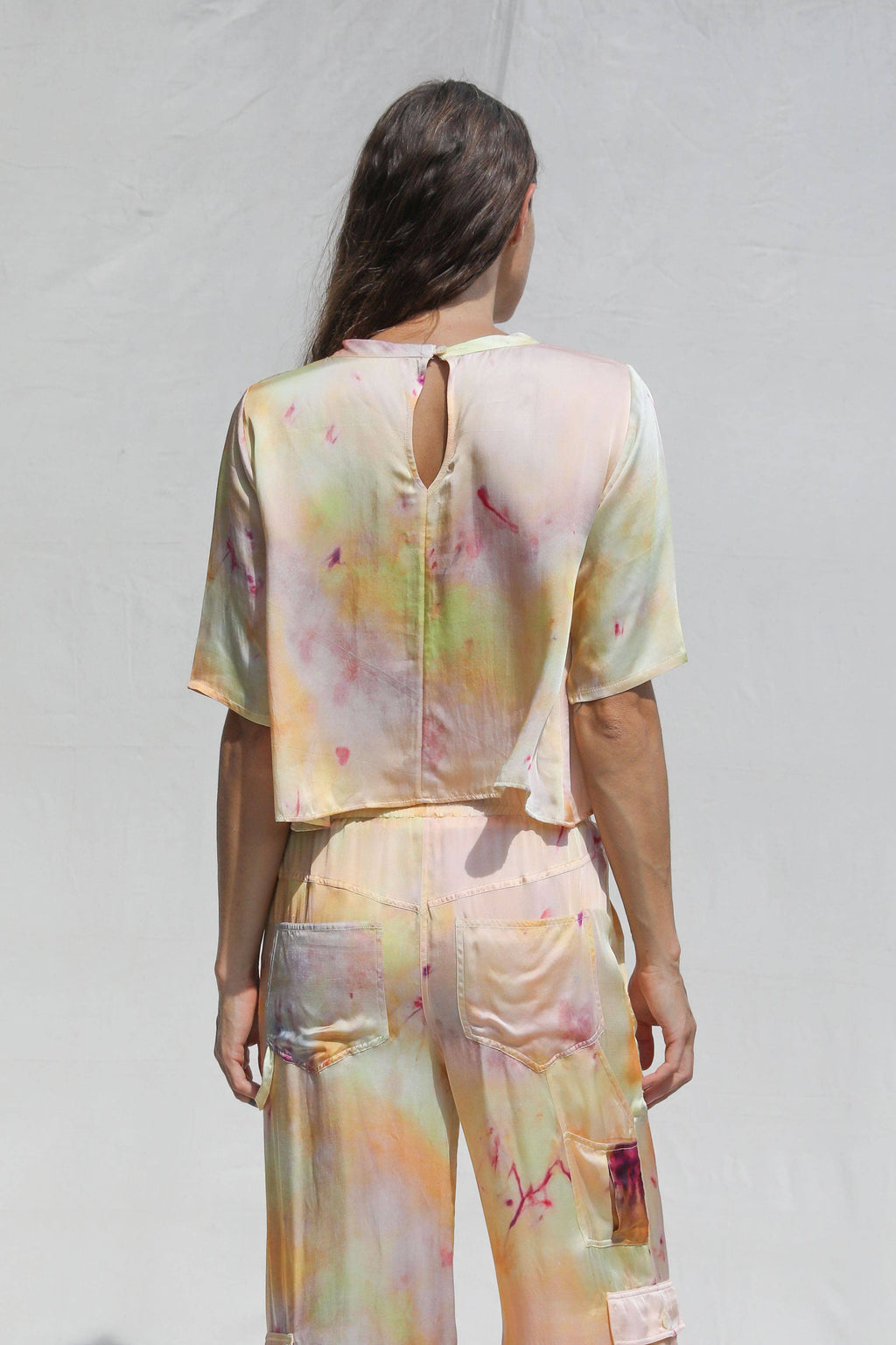 Vagabond Retro Green Flower Pouf Sleeve Button Up