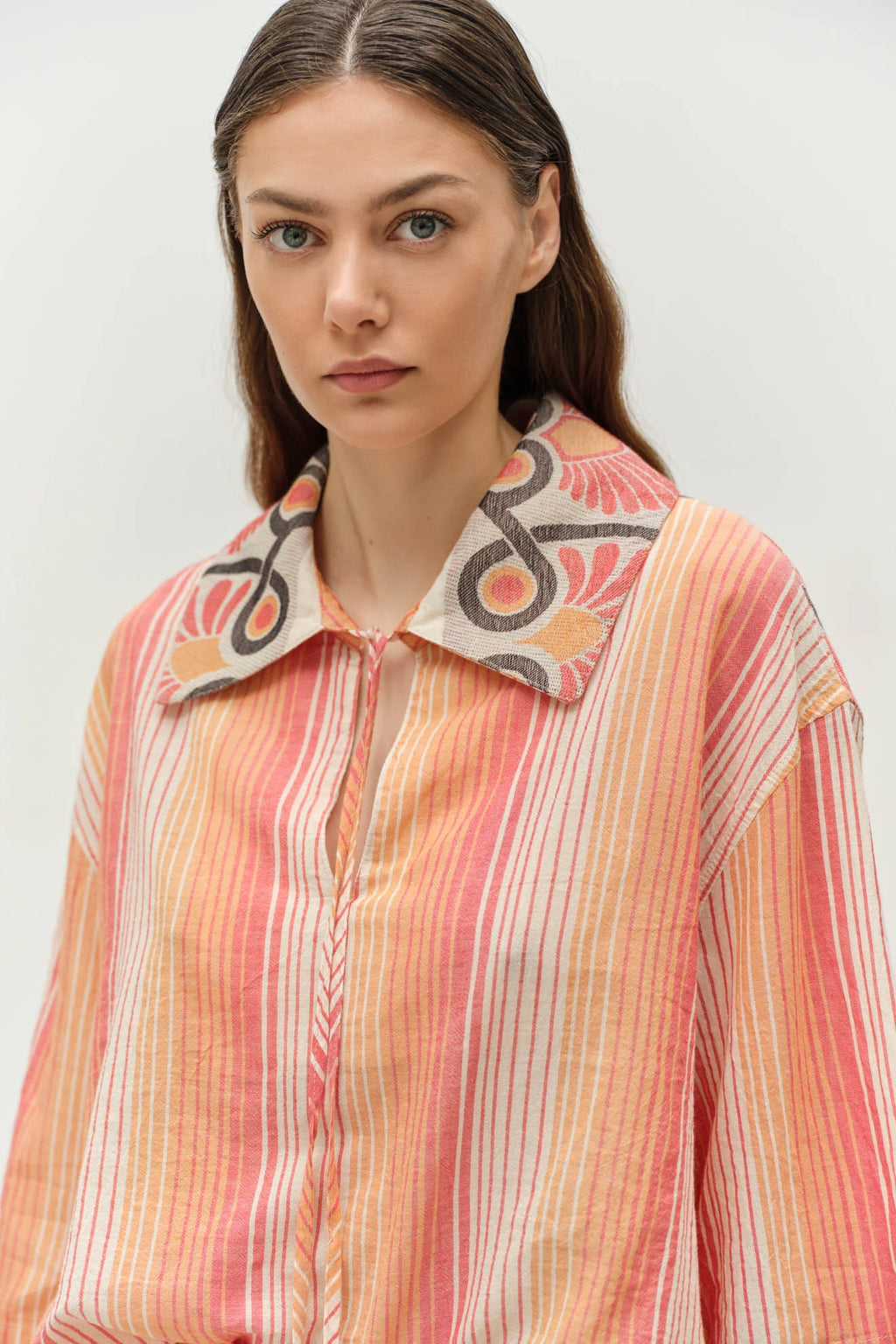 Celeste Hibiscus Geo Shirt in Sante Fe Red