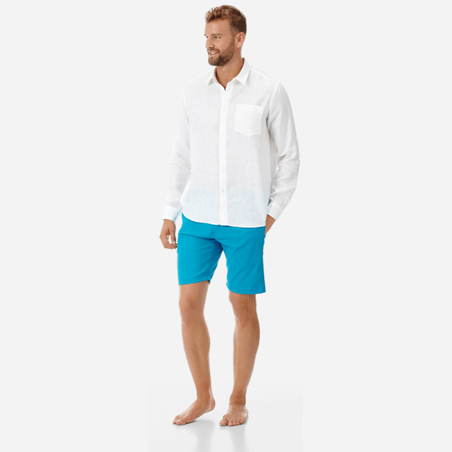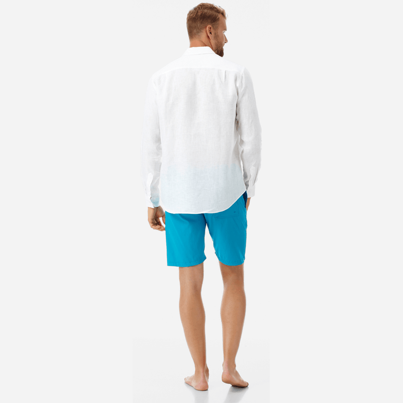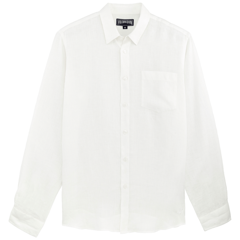 The Caroubis classic men's shirt looks just as good with Bermuda shorts, trousers or swim shorts. This essential, long-sleeved Vilebrequin piece is made from soft linen with a casual drape. Its simple cut includes a breast pocket as well as a discreet embroidered tone-on-tone turtle at the hem of the shirt.