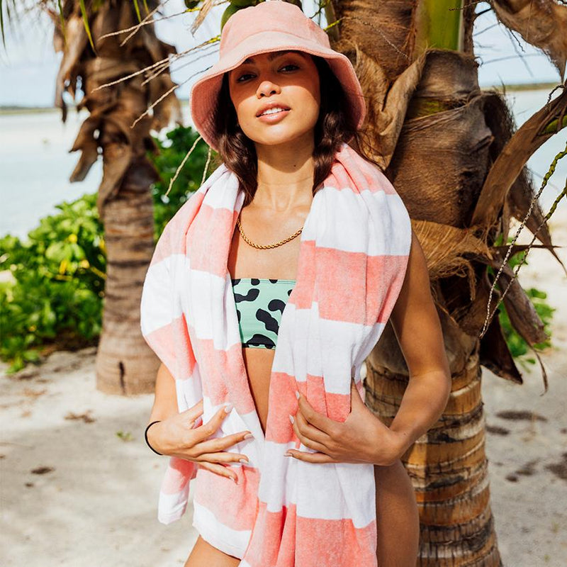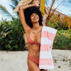 The super plush, 100% Cotton Pink Cabana Beach Towel is as cozy as it is cute. With pink and white stripes - it’s classic Beverly Hills vibes, perfect for the backyard.