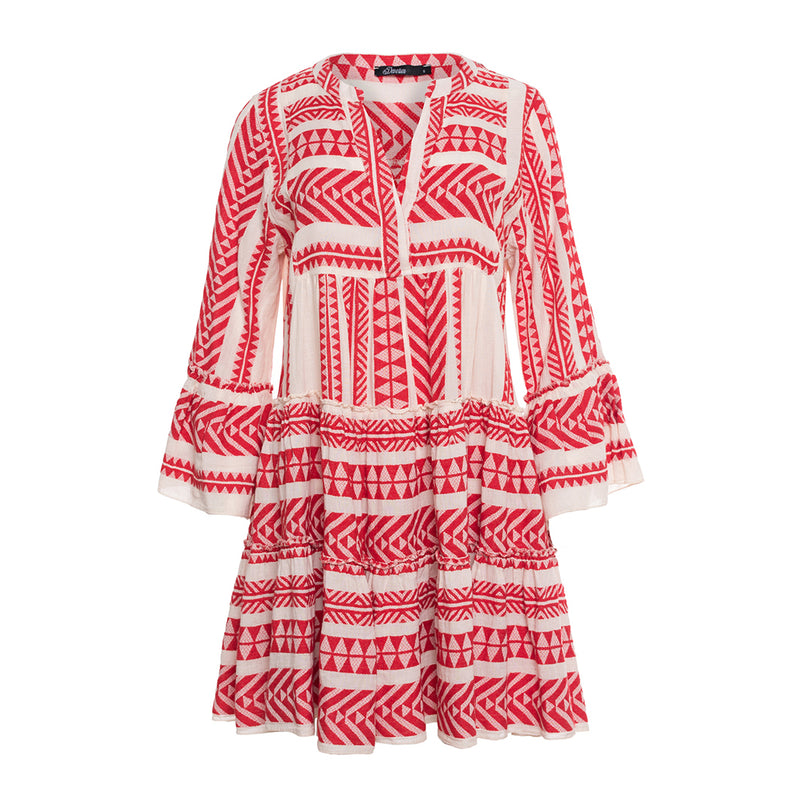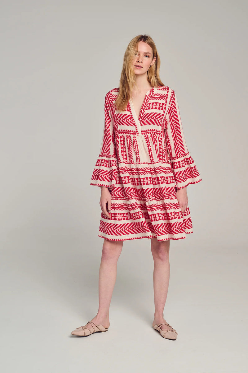 Short Ella Dress in Red/Off White