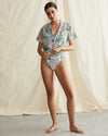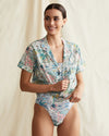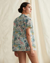 100% Cotton. Inspired by the glamour and lushness of Mustique in the Seventies, this cotton voile Liberty fabric perfectly captures the theme of our Spring 21 collection. It was printed in Italy using deep, saturated hues that register with vibrant clarity.