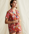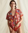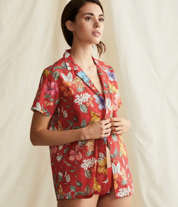 100% Cotton. Inspired by the glamour and lushness of Mustique in the Seventies, this cotton voile Liberty fabric perfectly captures the theme of our Spring 21 collection. It was printed in Italy using deep, saturated hues that register with vibrant clarity.