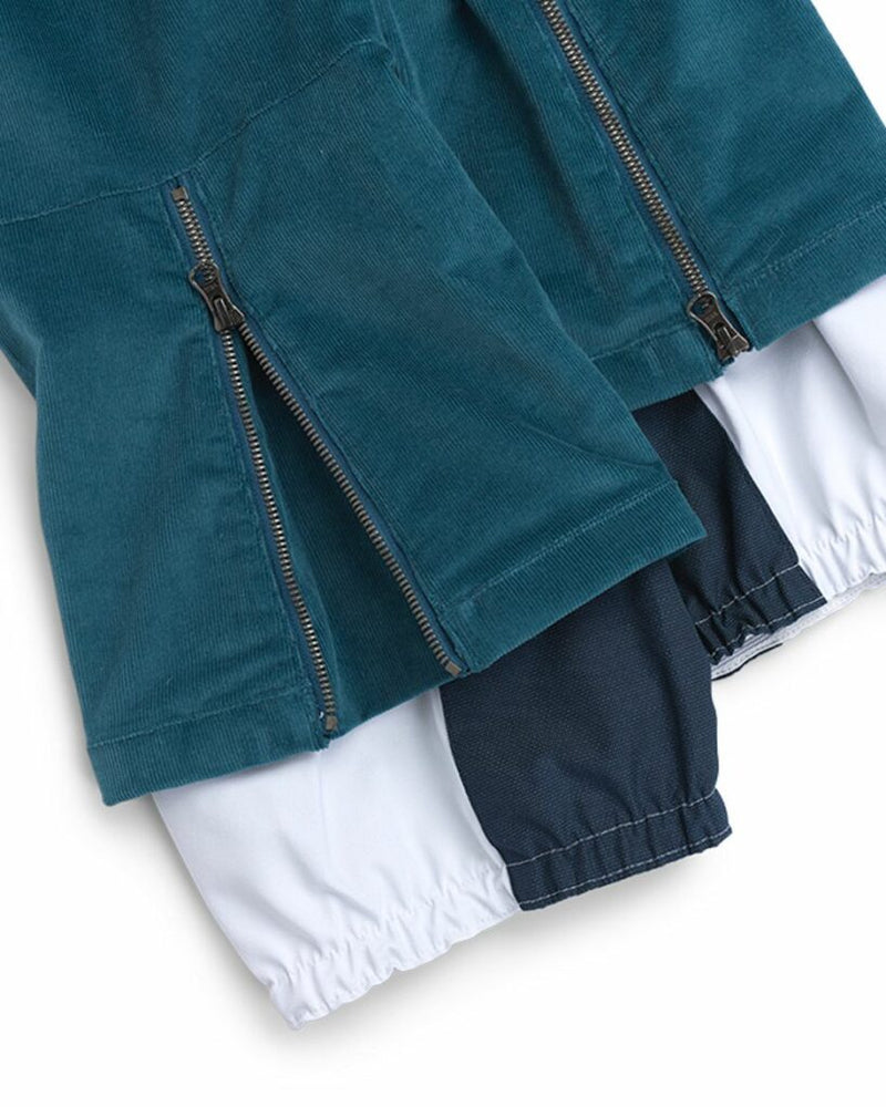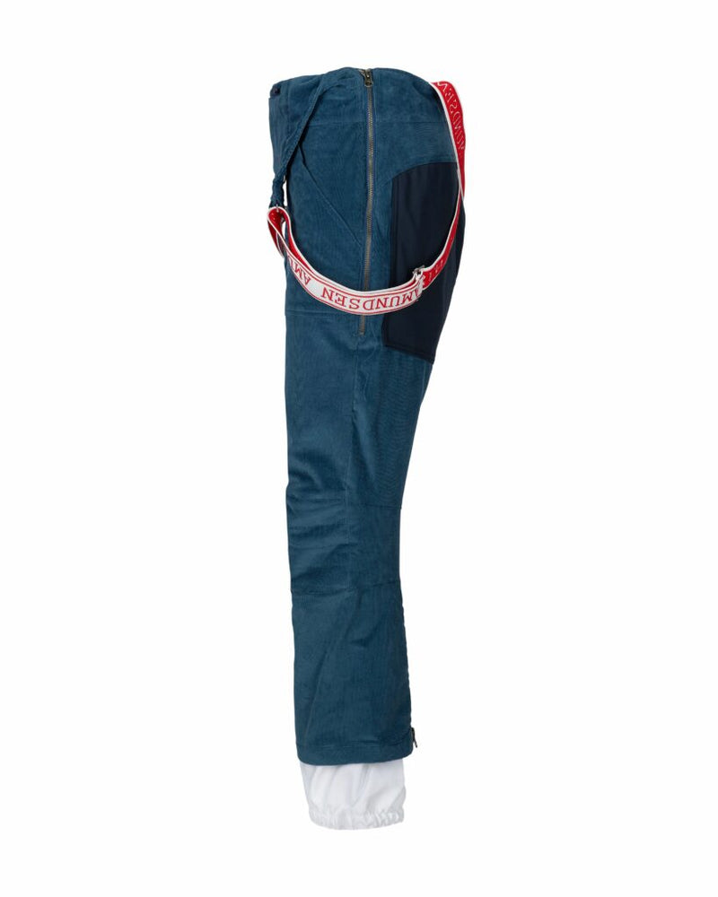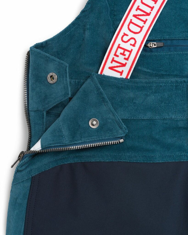 Long gone are the sweeping pant-legs when we now bring back the practically stylish cropped-leg pants with bib. Comfortable stretch corduroy and waterproof insulated seat… for all the serious skibums out there!